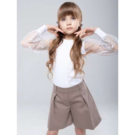 Стильные шорты без карманов выполнены в трапециевидном крое, поэтому выглядят как нарядная юбка или модная юбка-шорты. Они широкие и свободные, не сковывают движения, не сильно короткие, но и не такие длинные, как бермуды; имеют оптимальную длину чуть выше колен со средней посадкой и подходят даже для высоких детей.