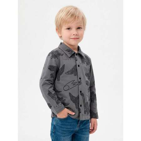 Рубашка с длинным рукавом для мальчика. Изготовлена из ткани футер 2-нитка с начесом 100% хлопок. На локтях декоративная "заплатка"-нашивка. Рубашка с застежкой кнопки. Рубашка для мальчика утепленная понравится вашему ребенку. Интересный принт понравится вашему ребенку.