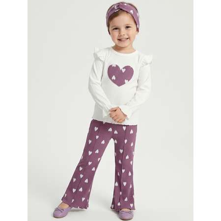Комплект одежды для девочки — стильный и универсальный вариант для повседневного ношения, прогулок, праздников и фотосессий. В комплект входят лонгслив молочного цвета, розовые брюки клеш с анималистичным принтом и повязка на голову, что позволяет легко создавать завершённый модный образ для малышки. Кофточка украшена нежным сердечком, декоративными крылышками и рюшами понизу рукавов — детали добавляют изящества и индивидуальности. Брюки клеш свободного кроя, не сковывают движения, обеспечивают удобство и свободу даже самым активным детям. Оригинальный анималистичный принт подчеркивает актуальность комплекта. Детский комплект выполнен из эластичного и дышащего материала кашкорсе (состав 95% хлопок, 5% полиэстер), что гарантирует комфорт и гипоаллергенность в течение всего дня. Костюм сохраняет форму и насыщенность цвета даже после множества стирок.