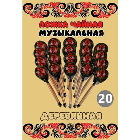 Цена на Ложка деревянная чайная Хохлома Оптом музыкальная Красный цветок 20 шт. - 750 ₽.