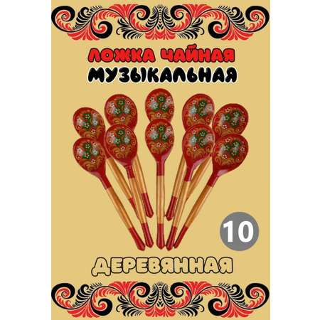 Цена на Ложка деревянная чайная Хохлома Оптом музыкальная Зеленые цветы 10 шт. - 1600 ₽.