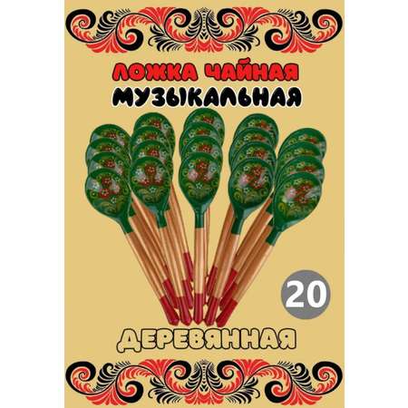 Цена на Ложка деревянная чайная Хохлома Оптом музыкальная Красные цветы 20 шт. - 3045 ₽.