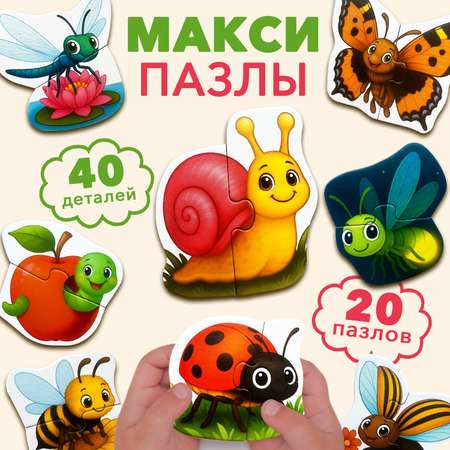 Крупные пазлы для малышей от Бигр пазлы "Букашки". В составе набора пазлов для малышей 20 пазлов из 40 деталей. Пазлы для детей 3 года состоят из двух половинок. Макси пазлы для детей от года большие, с крупными замочками. Сделаны из плотного картона. Пазлы для детей 2 года подходят для мальчиков и девочек 2, 3 лет.
