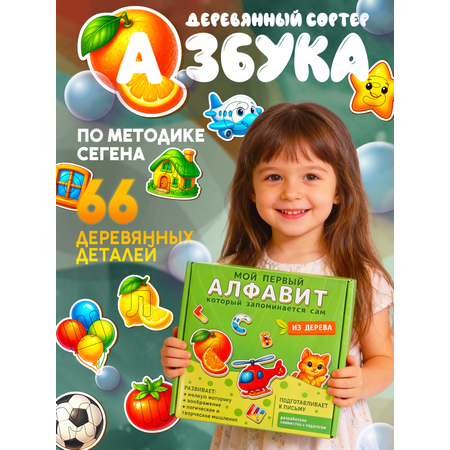 Деревянный сортер — это отличный развивающий подарок для детей от 3 лет. Он поможет развить у малыша моторику, учить буквы, новые слова, слоги, цвета, а также создать развивающую и веселую игру. Гласные и согласные буквы Русского алфавита с яркими картинками помогут ребенку легко запоминать слова, а разнообразные фигуры и формы стимулируют его интеллектуальное развитие. Развивающая игрушка из дерева подойдет как мальчикам и девочкам в возрасте 4 года, так и 5-6 лет для подготовки к школе.