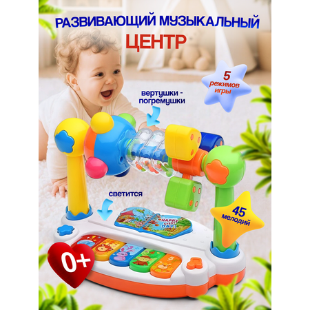 Интерактивный музыкальный центр — идеальный выбор среди игрушек для малышей до года и развивающих игрушек от 1 года. Этот музыкальный центр сочетает в себе яркий дизайн, световые эффекты и множество разнообразных мелодий, чтобы развлекать ребёнка и развивать его с самого раннего возраста. Надёжный и безопасный, он изготовлен из материалов высочайшего качества, а механизмы и динамики рассчитаны на активное ежедневное использование.