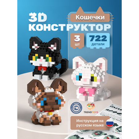 Цена на Конструктор TrendToys Конструктор котики 3d 3 шт 722 дет. - 899 ₽.