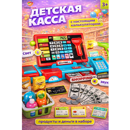 Цена на Игровой набор TrendToys Касса детская с продуктами 29 предм. - 3348 ₽.