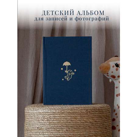 Альбом разработан с учетом всех потребностей творческих родителей: его формат позволяет использовать фотографии разных размеров (10×10, 10×15, 15×21), давая свободу для креативных идей. Обложка выполнена из изысканного синего тканевого полотна, а внутренние страницы — из белой бумаги плотностью 160 гр, что придает изделию особую элегантность и долговечность.