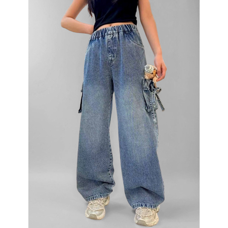 Джинсы iUkoworld - это стильное и удобное решение на весну-лето для юных модниц. Модель багги с высокой посадкой и широким кроем обеспечит максимальный комфорт в течение всего дня. Джинсы изготовлены из качественного материала с добавлением хлопка, полиэстера и спандекса, что делает их мягкими, прочными и приятными к телу. Оригинальный дизайн дополнен декоративной игрушкой мишкой на кармане и боковыми карманами карго, придавая джинсам игривый и стильный вид. Благодаря варенному эффекту и эффекту потертости, джинсы выглядят модно и современно. Эти джинсы - идеальный выбор для повседневной носки, посещения детского сада или праздничных мероприятий. Они легко сочетаются с различными верхами, создавая стильные и комфортные образы для вашей дочки.