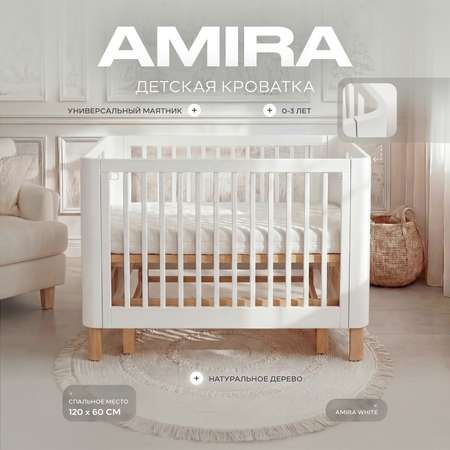 Детская кроватка Rant Amira white, универсальный маятник (белый)