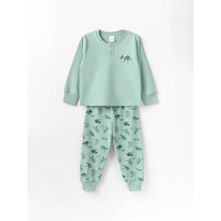 Представляем стильную детскую пижаму для мальчика! Домашний комплект изготовлен из натурального качественного премиум хлопка, который обеспечит малышу комфорт во время отдыха и сна дома и в саду или домашних игр. Пижама детская со штанами состоит из мягких брюк и уютной кофты с длинными рукавами, что идеально подойдет для демисезонных ночей. Трикотажный хлопковый материал детской пижамы приятный к телу, хлопок дышит и не вызывает раздражений на теле ребенка. Свободный и комфортный крой костюма для дома, удобные мягкие манжеты и резинка штанишек и кофточки не сковывают движений ребенка, не давят и не натирают. Модный прикольный дизайнерский принт с динозаврами понравятся мальчишкам. Этот пижамный домашний комплект со штанами станет отличным выбором в повседневном гардеробе мальчиков для садика и дома.