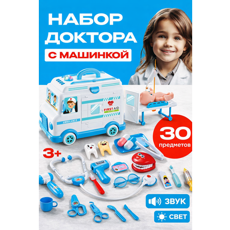 Игрушечный набор доктора включает в себя 52 предмета, среди которых много интересных аксессуаров, нужных в работе настоящего доктора, например, челюсть и медицинский чемоданчик. Набор стоматолога поможет детям привить правильные привычки и почувствовать себя настоящим стоматологом или реаниматологом. Набор врача детский включает разнообразные предмета со звуковыми и световыми эффектами. Набор доктора в чемодане, в котором можно хранить все предметы этого набора.