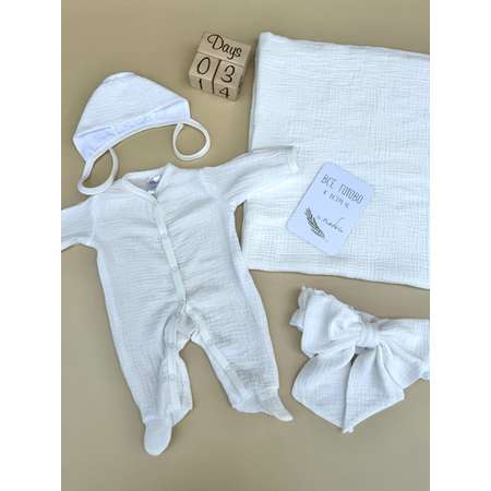 Набор для летней (май-август) выписки из роддома включает 4 предмета для новорожденного: