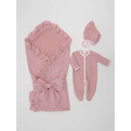 Набор создан для первой встречи малыша из роддома и для дальнейшего использования. Выполнен из 100% муслина - тонкого, легкого, дышащего материала. Комбинезон слип с закрытыми ножками, антицарапками - специальные отвороты на рукавах.