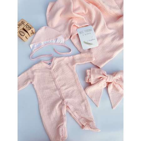 Набор для летней (май-август) выписки из роддома включает 4 предмета для новорожденного: