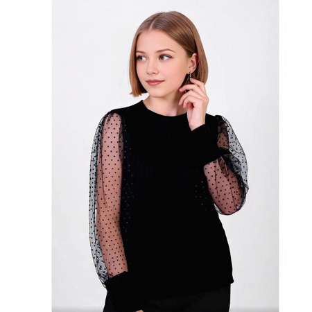 Блузка черная в школу для девочки. Выполнена из ткани лапша с добавлением лайкры.