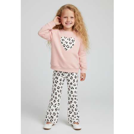 Костюм для девочки выполнен на 70% из хлопка, будет приятен к телу и не будет доставлять дискомфорта при носке. На лонгсливе имеется нашивка в виде сердца.