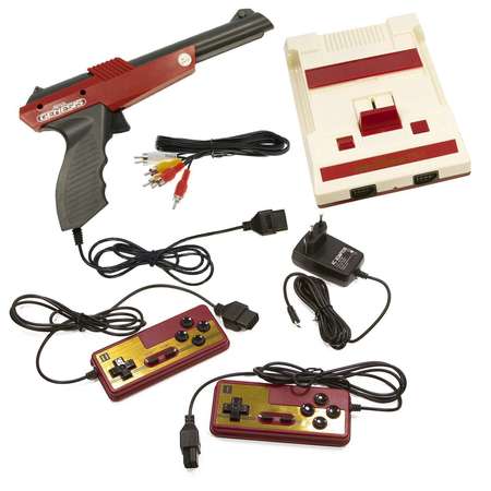 Модель идет в комплекте с большим световым пистолетом формы Zapper. Он позволяет играть в игры, предназначенные для пистолета: Duck Hunt, Hogan's Alley, Wild Gunman и другие. *Пистолет гарантированно работает только с кинескопными экранами ЭЛТ и не поддерживает современные ЖК телевизоры.