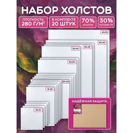 Холсты для рисования на картоне AXLER грунтованные набор 20 шт для масляных красок и акрил 70% хлопок 30% полиэстер