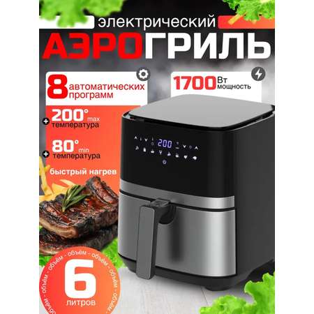 Аэрогриль — компактный помощник на кухне с мощностью 1700 Вт и вместительной емкостью 6 литров.