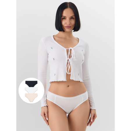 Этот комплект представлен в нескольких цветах — белом, черном и бежевом — что позволяет подобрать оптимальный вариант под любой образ и одежду. Незаметный шов минимизирует дискомфорт и делает трусики подходящими для ношения даже под тонкими или прозрачными вещами.