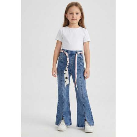 Джинсы для девочки, с завышенной талией. Джинсы выполнены из качественного плотного эластичного денима. Спереди имитация ширинки. Модель дополнена шлевками для ремня, двумя карманами спереди и двумя карманами сзади. Джинсы отлично подойдут для повседневной носки. Перед ноской, рекомендуем предварительную стирку.