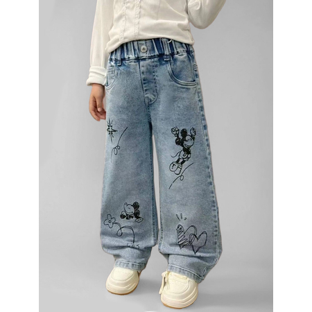 Стильные детские джинсы iUkoworld – это настоящий тренд сезона 2026, который идеально впишется в гардероб любой девочки. Модель выполнена в актуальном этой весной и летом стиле багги, с широкими прямыми трубами и средней посадкой, что делает их не только удобными, но и визуально удлиняет ноги. Модные джинсы для девочки с эффектным и необычным рисунком всеми любимого мультика Мики Маус по всей штанине спереди с сердцем – это не просто одежда, а способ самовыражения, позволяющий подчеркнуть индивидуальность и чувство стиля. Джинсы широкие детские изготовлены из дышащего материала, состоящего из хлопка, полиэстера и спандекса, что обеспечивает комфорт и свободу движений в течение всего дня. Удобная резинка на поясе джинс багги с прямыми штанинами исключает необходимость в застежке, делая эти джинсы идеальным выбором для повседневной носки. Прорезные и накладные карманы добавляют практичности, а синийцвет легко сочетается с любыми верхами.
