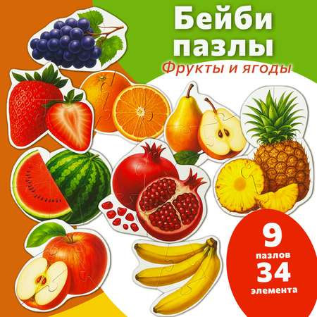 Пазлы «Ягоды и фрукты» – яркая развивающая игра для детей 1, 2 лет