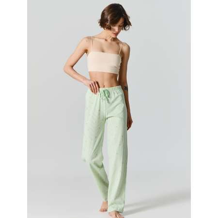Хлопковая ткань отличается износостойкостью, хорошо держит форму и сохраняет аккуратный внешний вид даже после многократных стирок. Лёгкий принт добавляет образу нежности и уюта, делая модель актуальной и привлекательной. Брюки легко сочетаются с топами, майками, футболками и лонгсливами, позволяя создавать удобные домашние комплекты и пижамные наборы.