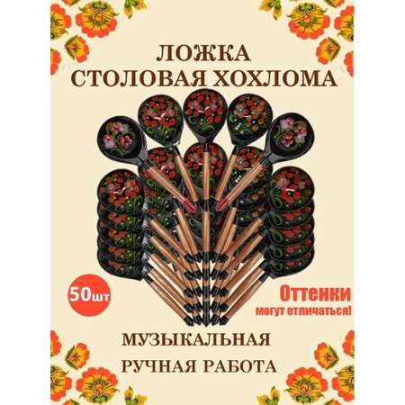 Цена на Ложка столовая Хохлома Оптом деревянная музыкальная Красный цветок - 50 шт. - 9280 ₽.