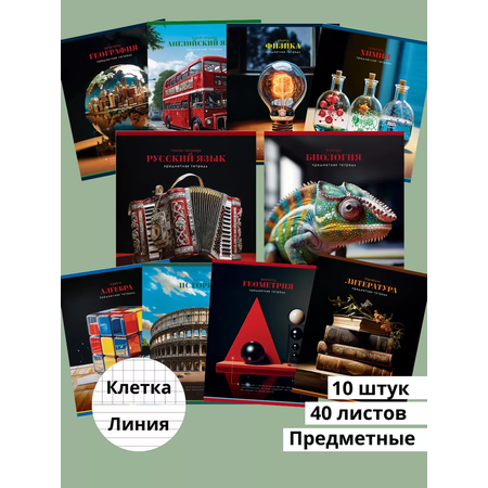 Тетрадь BG 40 лист. 12 шт. (Алгебра, Английский язык, Биология, Физика, География, Геометрия, История, Литература, Русский язык, Химия)
