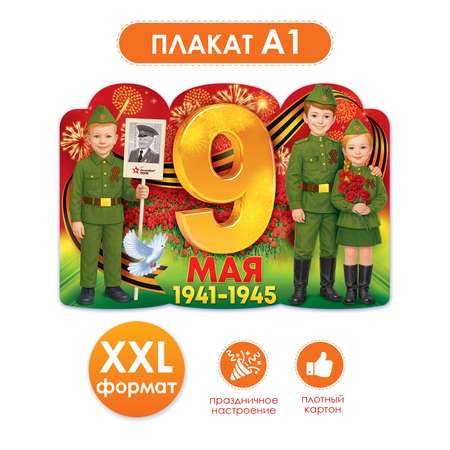 Яркий вырубной плакат 9 Мая в формате А1 создан для торжественного оформления класса, актового зала, коридора или группы. На насыщенном красно‑золотом фоне вспыхивают праздничные фейерверки, среди алого моря тюльпанов сияет крупная объемная цифра «9», а под ней надпись «МАЯ 1941–1945». Четкая печать подчеркивает каждую деталь, цвета выглядят как на живой открытке. Справа и слева изображены дети в форме времён Великой Отечественной войны: мальчики в гимнастерках с ремнями и звёздами на пилотках, девочка с косой и букетом алых гвоздик. На груди у ребят аккуратно прорисованы георгиевские ленточки, за их спиной плавно изгибается черно‑оранжевая лента, которая визуально объединяет композицию. Слева мальчик держит штандарт «Бессмертный полк» с портретом ветерана, у его ног парит белоснежный голубь как символ мира. Такой плакат ко Дню Победы изготовлен из плотного картона, материал изготовления – картон устойчив к изгибам, не рвётся от лёгкого прикосновения, сохраняет форму при многократном использовании. Благодаря крупному формату А1 оформление хорошо заметно даже в просторном холле, поэтому плакат 9 мая оформление пространства делает по‑настоящему торжественным. Изделие подойдёт для школы и детского сада, домов творчества, библиотек, музейных уголков, патриотических выставок. Плакат день победы школьный помогает педагогам наглядно рассказать о подвиге народа, создаёт атмосферу уважения к истории, настраивает детей на серьёзный, но светлый разговор о мире. Композиция выглядит празднично, но тактично, без излишней мрачности, поэтому её легко использовать и на утренниках, и на классных часах. Такой плакат ко дню победы выгодно выделяется продуманным дизайном, прочным основанием и универсальным стилем: его можно разместить на стене, двери, ширме, информационном стенде. Добавьте в интерьер выразительный акцент, который сразу задаёт настроение праздника, и закажите этот плакат 9 мая уже сейчас.