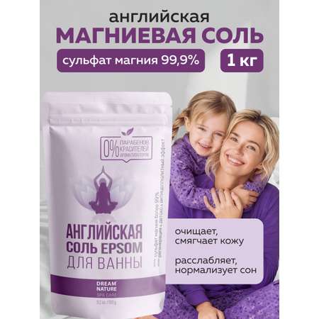 Английская соль epsom для ванны DREAM NATURE SPA CARE — идеальный выбор для домашнего спа-ухода. Натуральная магниевая соль - уникальный продукт для восстановления силы и снятия напряжение. Продукт содержит 99,9 % сульфата магния высокой чистоты, что делает его эффективным средством для восстановления после тренировок, снятия усталости и напряжения в мышцах. Использование эпсом соли улучшает кровообращение, поддерживает кожу в тонусе и помогает бороться с целлюлитом.