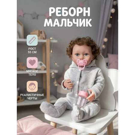 Реборн мальчик умеет сидеть и лежать, поворачивать голову, а его ручки и ножки подвижны. В комплект входит набор оригинальных мини-аксессуаров, которые способствуют развитию творческих навыков и воображения. Густые волосы позволяют девочкам расчесывать пупса, что делает её одной из самых популярных игрушек среди детей.