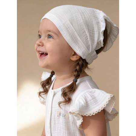 Белая муслиновая косынка — это универсальный головной убор для детей, который идеально подходит для лета. Мягкий хлопковый муслин обеспечивает комфорт даже в самые жаркие дни, а дышащая ткань подходит для пляжа, прогулок, у моря или в саду. Изделия такого типа часто выбирают как наряд для садика, дня рождения, крещения . Хлопковая повязка на резинке легко фиксируется, не стягивает, не раздражает кожу и подходит даже для самых маленьких. Однотонный вариант отлично сочетается с разной детской одеждой, подчеркивая нарядный стиль дочери.