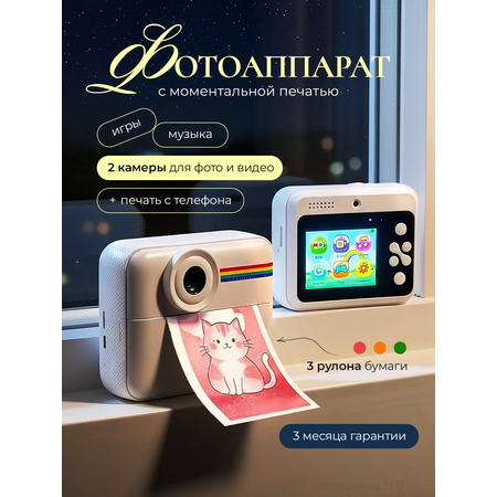 Подарите ребенку волшебство мгновенных фотографий с детским фотоаппаратом моментальной печати от Хевель! Этот компактный фотопринтер мгновенной печати цветной станет лучшим другом для юных фотографов, позволяя им запечатлевать самые яркие моменты и делиться ими с друзьями и семьей. С помощью удобного 2.4-дюймового экрана ваш ребенок сможет легко настроить кадр и сделать идеальный снимок. Встроенная память на 32 ГБ и поддержка microSD карт обеспечат достаточно места для хранения сотен фотографий, а время непрерывной работы до 4 часов позволит запечатлеть все приключения дня. В комплект входит всё необходимое для начала: фотоаппарат, бумага для печати, кабель, шнурок, карта памяти и адаптеры. Этот фотоаппарат станет прекрасным подарком для любого ребенка, который любит фотографировать и творить!