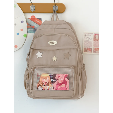 Милый рюкзак y2k - это не только аксессуар, но и функциональный элемент повседневной жизни подростка. Портфель для девочки большой и вместительный, у него есть 2 передних кармана на замке и два открытых боковых кармана для мелочей. Он имеет большое основное отделение и легко вмещает формат А4, а так же отделение спереди, куда можно разместить документы. Удобные широкие лямки позволят комфортно носить все необходимые школьные принадлежности, а прочная ткань обеспечит долгий срок службы вашему новому любимцу. Для быстрого доступа к важным мелочам на спинке расположен карман на молнии, а специальная лямка для багажа позволит путешествовать с комфортом. Дизайн со звездами в стиле у2к и прозрачный карман добавляет модного шарма этому стильному аксессуару. Этот корейский женский рюкзак с аниме дизайном it a bag обязательно порадует любого подростка и станет прекрасным подарком на любой праздник. Он тканевый, а значит легкий и мягкий. Если вы хотите приобрести универсальный, молодежный и практичный ранец для школьника и для университета, который отлично подходит как для спортивного и туристического использования, так и для походов в школу или в колледж - этот эстетичный аксессуар как из пинтерест точно сочетает в себе все нужные качества!
