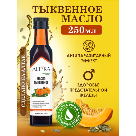 Масло тыквенное ALTYRA — это ценный источник полезных веществ, полученный методом холодного отжима. Это сыродавленное масло первого отжима, сохранившее все свои натуральные свойства. Нерафинированное масло тыквы богато витаминами и антиоксидантами, а его гепатопротекторное действие благотворно влияет на печень. Добавьте его в свой рацион, чтобы насладиться его неповторимым вкусом и ощутить все его преимущества.