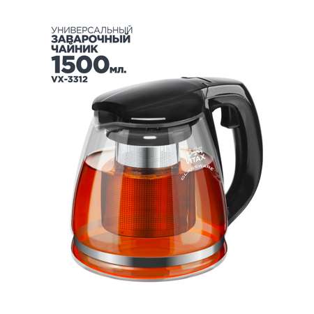 Стеклянный заварочный чайник Vitax Arundel VX-3312 емкостью 1500 мл (1 литр 500 мл) из жаропрочного боросиликатного стекла идеально подходит для заваривания чая и травяных настоев. Емкость оснащена удобным металлическим фильтром, который легко извлекается, обеспечивая простую фильтрацию и предотвращая попадание чаинок в чашку. Благодаря прозрачному корпусу можно наблюдать за процессом заварки, что делает его использование не только практичным, но и эстетичным. Этот стильный заварник подходит подачи напитков в кафе или ресторанах. Он станет прекрасным дополнением к кухонной утвари или чайной посуде для домашнего использования. Жаростойкое стекло устойчиво к высоким температурам, а прочная пластиковая ручка обеспечивает комфорт при наливании. Идеален как подарочный вариант благодаря своему красивому дизайну и универсальности. Такой аксессуар станет полезным инвентарем на кухне или офисе для приготовления свежезаваренного чая либо кофе. Крышка плотно закрывает емкость, сохраняет аромат настоя, а носик обеспечивает аккуратное разливание без капель.