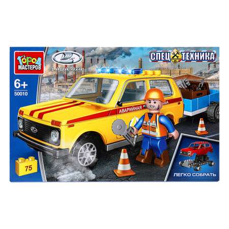 Конструктор «Lada Нива с прицепом. Аварийная служба» из серии «Спецтехника» ТМ «Город мастеров» понравится маленьким автолюбителям.