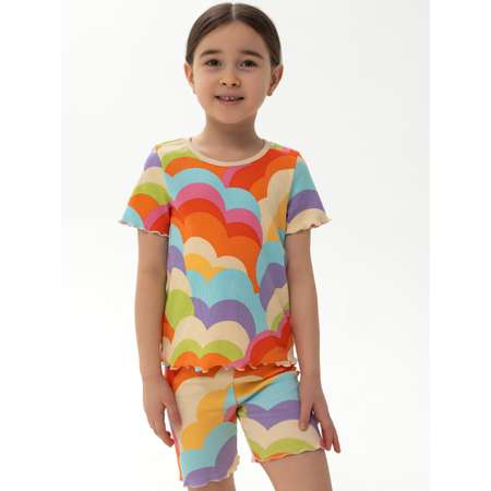 Костюм для девочки футболка и шорты, комплект для девочки футболка и шорты из ткани кашкарсе.