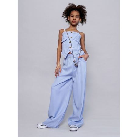 Представляем вашему вниманию стильный и модный праздничный комплект для девочек подростков и девушек. Идеально подходит для создания ярких и запоминающихся образов. В него входят топ на лямках и брюки. Выполнены в современном корейском стиле, который сейчас на пике популярности среди молодежи. Оригинальный верх свободного кроя подарит ощущение комфорта и уверенности в любой ситуации, в том числе на занятиях спортом или физкультурой. V-образный низ добавляет изюминку в образ, делая его более выразительным и запоминающимся. Удобные пуговицы спереди позволяют легко надевать и снимать топ, что особенно важно для активных подростков, которые всегда в движении и много вермени проводят на улице. Крутые штаны с высокой талией не только следуют последним тенденциям моды, но и отлично поддерживают фигуру, создавая стройный силуэт. Резинка на поясе обеспечивает максимальный комфорт при любых обстоятельствах. Будет отличный лук на новый год или рождество. Широкие оверсайз карго добавляют образу расслабленности и делают его подходящим как для прогулок, так и для танцевальных вечеринок или баттлов на сцене, хип хоп, k-pop, брейк-данс. Находка для юного блогера. Костюм тройка подходит как для сольных, так и для коллективных выступлений. Для повседневной носки или особенных событий. Трендовый нарядный летний комплект выполнен из качественных тканей, которые приятны на ощупь и хорошо держат форму после многократных стирок. Обратите внимание на остальной ассортимент товаров торговой марки Tioka, предназначенный детям 5, 6, 7, 8, 9, 10, 11, 12, 13, 14 лет.