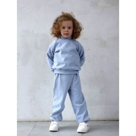 Джемпер с горлом также выполнен в полоску, что делает образ цельным и гармоничным. Универсальный цвет подчёркивает стиль комплекта. Отличный вариант для прогулок, детского сада, школы или семейных выходов.