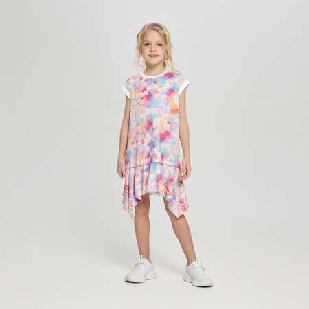 Трикотажное платье для девочки с фирменным принтом от Choupette — это стильный и удобный наряд, который идеально подходит для повседневной носки и особых случаев. Платье выполнено из мягкого и эластичного трикотажа. Яркий принт и современный дизайн делает его привлекательным для детей любого возраста. Асимметричный волан по низу добавляет оригинальности и динамичности в образ.