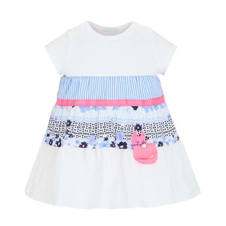 Нарядное платье для девочки от Choupette выполнено из натуральной ткани, поэтому вашему ребенку не будет в нем жарко. Модное изделие с короткими рукавами выполнено из хлопковой ткани бело-голубого цвета с цветочным принтом. Модель прямого кроя с воланами. Ваша дочка будет выглядеть стильной и модной на фотосессии или любом другом торжественном мероприятии. Платье легко одеть на малышку благодаря застежке на кнопки. Это платье идеально для любого времени года и подойдет для похода на праздник, вечерних прогулок и для повседневной носки. Прекрасный выбор для новорожденных и детей до года!