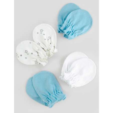 Комплект из 4 пар антицарапок для новорождённых. Комплект состоит из рукавичек, которые прекрасно подойдут к любому наряду малыша, как мальчика, так и девочки. Рукавички-антицарапки - незаменимая вещь для новорождённых от рождения до 3 месяцев. Дети в этом возрасте плохо контролируют свои ручки. Многие родители сталкиваются с проблемой того, что младенец царапает себе личико и ранит себя. Царапки для новорожденных отлично справляются с этой проблемой. Комплект детских рукавичек-антицарапок выполнен из натурального хлопкового трикотажа. Модель со швами наружу, что бы защитить нежную кожу ребёнка. Рукавички фиксируются на руке хорошо тянущейся резинкой, благодаря которой, царапки легко одеть на маленькую ручку малыша. Варежки произведены в России из ткани высокого качества, которая соответствует всем строгим требованиям к одежде новорожденных.