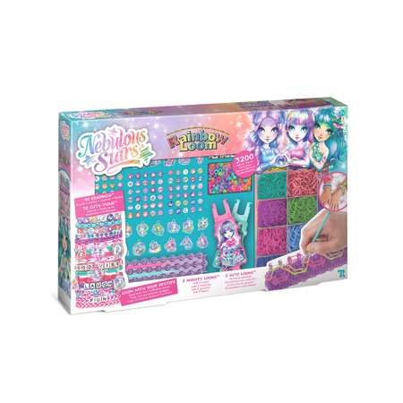 Создавайте восхитительные браслеты! Благодаря двум большим станкам и двум автоматическим мини-станкам процесс становится быстрым и веселым занятием. Комплект дополнен эксклюзивными подвесками Nebulous Stars и яркими шармами для космических шедевров.