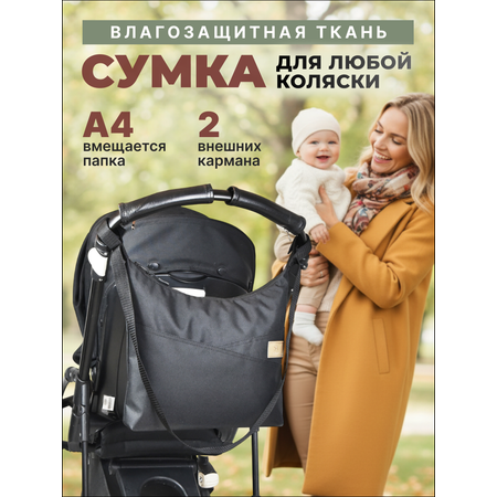 Сумка на коляску разработана специально для подгузников, бутылочек, салфеток и других мелочей, которые могут понадобиться на прогулке или в дороге. Благодаря продуманному внутреннему пространству все будет находиться под рукой — не нужно тратить время на поиски нужной вещи.