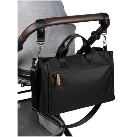 Органайзер с креплением позволит с легкостью отправиться на шоппинг. Черная сумка для прогулочной коляски имеет 3 внешних кармана.
