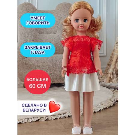 Классическая кукла 60 см. Кукла умеет говорить, сидеть и закрывать глаза. Волосы прошиты по всей голове, её можно причёсывать. Производство Беларусь. У куклы качественная съёмная одежда. Кукла изготовлена из полимерных материалов.